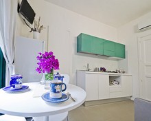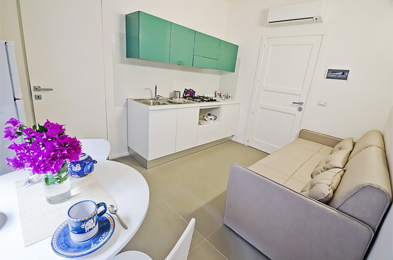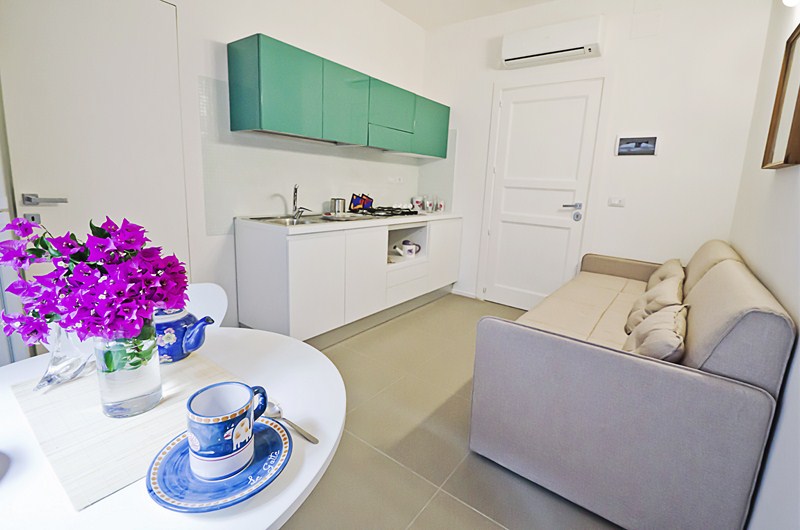 Al primo piano si trova l'appartamento “Licosa”, non vista mare, composto da cucina con divano letto singolo e balconcino con affaccio nel cortile, una camera con letto matrimoniale e bagno. E’ dotato di stoviglie, tv, aria condizionata e WiFi. E’ sprovvisto di lavatrice. L'appartamento può ospitare per un massimo di 3 persone.